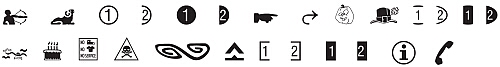 Symbol Pack 1 contient principalement des symboles abstraits comme des croix, des flèches ou des motifs. Vous y trouverez également des symboles sur des thèmes tels que voyages, fêtes, etc ...