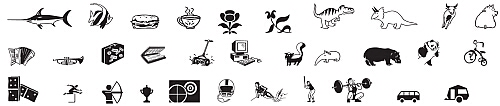 Symbol Pack 2 contient principalement des symboles thématiques sur la nourriture, les boissons, les jeux, les sports, les transports, etc ...